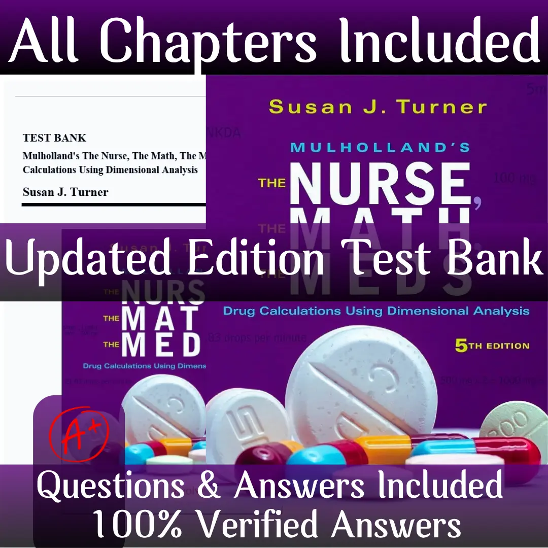 Test Bank for Mulholland’s The Nurse, The Math, The Meds 5th Edition Turner | All Chapters Included