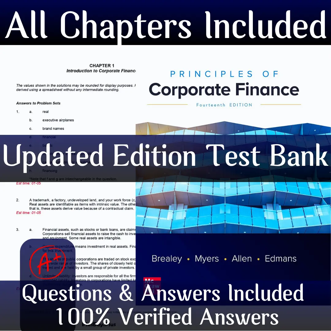 Test Bank for Principles of Corporate Finance 14th Edition Whitman | All Chapters Included