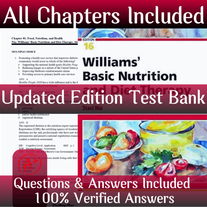 Test Bank – Williams’ Basic Nutrition & Diet Therapy 16th Edition McIntosh | All Chapters Included